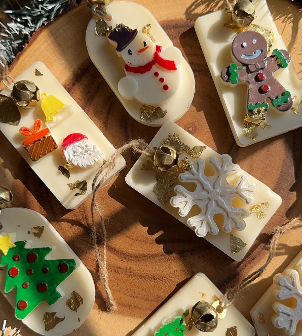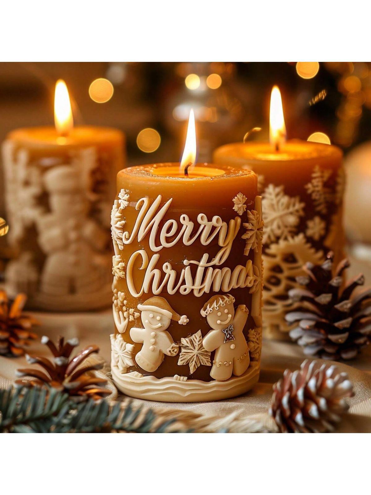 Bring the warmth of the holidays into your home with these beautifully handcrafted Christmas Tree Candles. Designed in vibrant seasonal shades of red, green, white, and earthy tones, each candle resembles a charming miniature Christmas tree topped with a golden bell. Perfect as a table centerpiece, gift, or decorative accent, they add a cozy glow and festive spirit to any space. Made with love and attention to detail, these candles not only light up your room but also your heart. Celebrate the season with elegance and charm—because Christmas magic begins with a little sparkle!