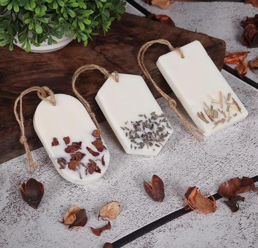 Perfect for closets, drawers, or even as a decorative accent in your living room, these wax sachets release a gentle, long-lasting aroma without the need for flames or electricity. The natural twine loop makes them easy to hang anywhere, adding both function and style to your home décor.